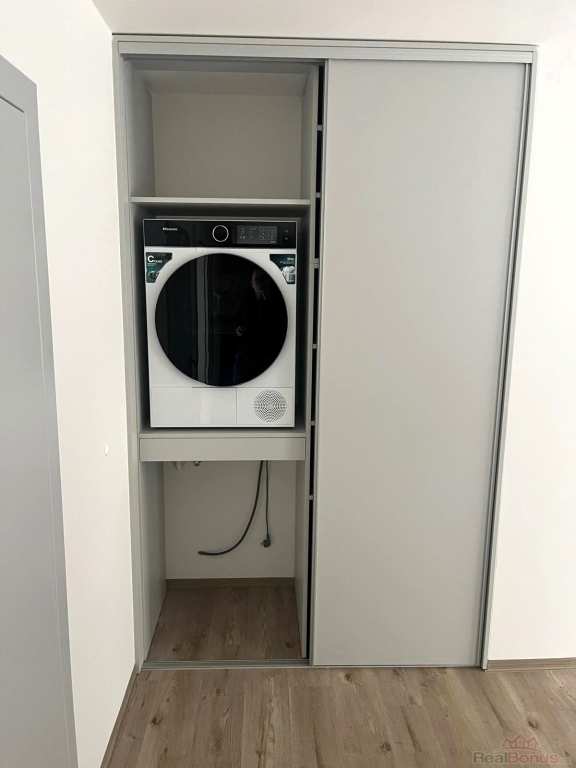 Samotný byt nabízí vstupní chodbu, kde je dále vstup do ložnice, dětského pokoje, kuchyně s obývacím pokojem, koupelny s vanou a sprchovým koutem zvlášť a oddělené WC. Z obývacího pokoje s kuchyňským koutem je vstup na balkón 5,3 m2 na JV stranu. Kuchyňská linka je kompletně vybavena indukční varnou deskou, troubou, digestoří, myčkou a vestavěnou lednicí. V chodbě jsou dvě vestavěné skříně. V jedné úložný prostor na domácí náčiní (vysavač, úklidové prostředky apod.) spolu s pračkou a sušičkou. Ve druhé, větší skříni jsou připravené police a šatní tyče pro uložení oblečení a bot. Do bytu je zavedena pozemní TV anténa, připraveny jsou rozvody pro internet. Byt je vhodný pro nekuřáky a bez domácích mazlíčků.