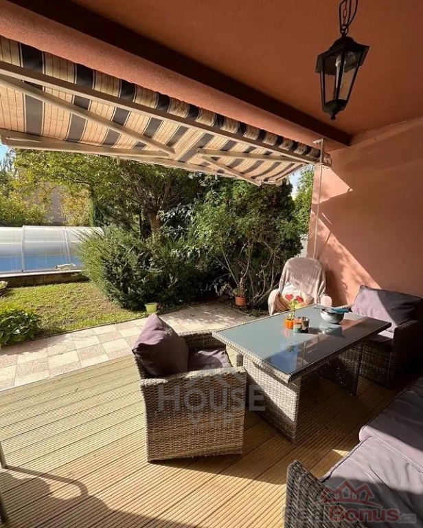 Pozemky 425 m2, z toho je 96 m2 zastavěná plocha a nádvoří, 329 m2 zahrada se zastřešeným bazénem, terasou pro venkovní posezení, kolem bazénu jsou vzrostlé stromy, chránící soukromí lidí u bazénu.