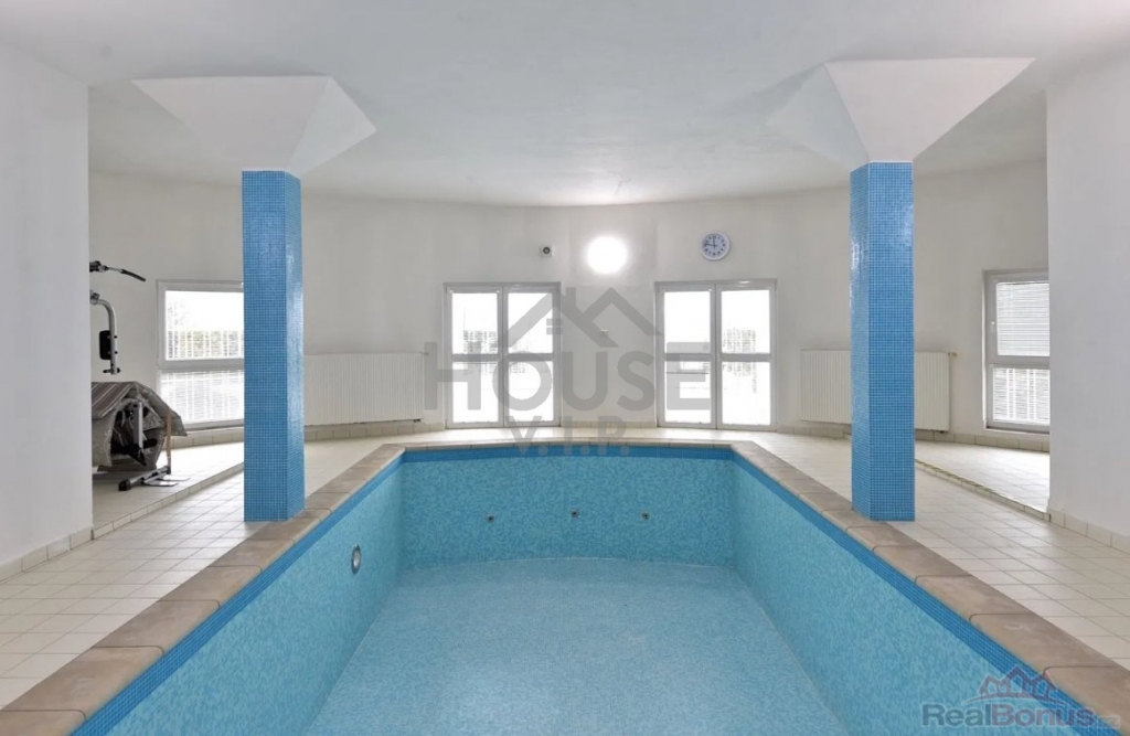 Zakrytý vnitřní bazén, sauna, sprcha, toaleta a technické zázemí. Přímý vstup na terasu a zahradu zajišťuje komfortní relaxaci nebo možnost pořádání firemních či společenských akcí.