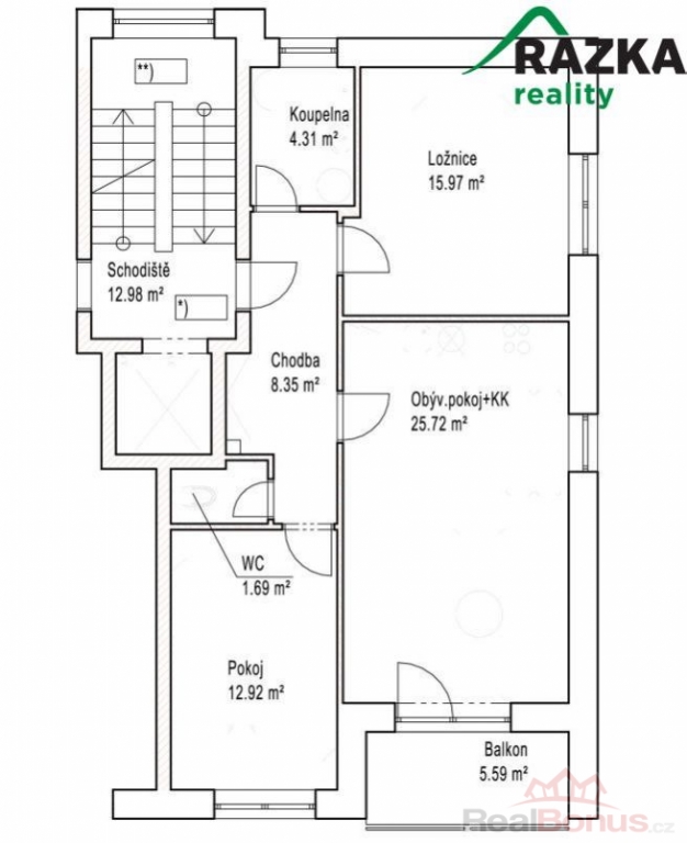 Bytová jednotka o dispozici 3+kk a podlahové ploše 69,03 m2 je situována ve 2. nadzemním podlaží bytového domu s výtahem. Velkou výhodou je balkon o velikosti 5,59 m2, který nabízí příjemné místo pro relaxaci. Součástí bytu je také sklepní kóje.
