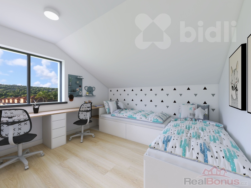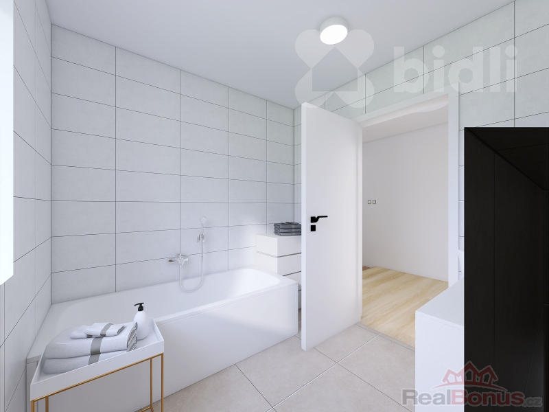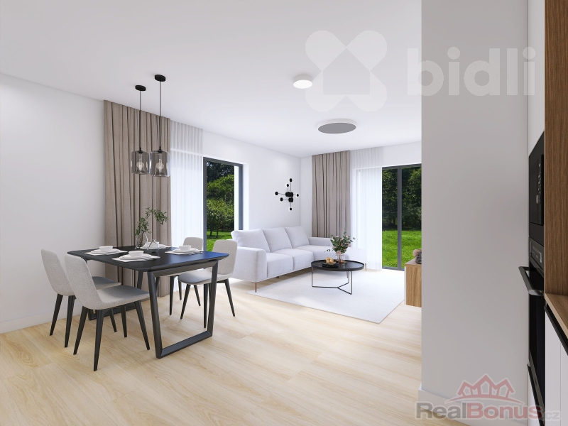 Novostavba nízkoenergetického mezonetového bytu o dispozici 3+KK a podlahové ploše 85,5 m2, v provedení montované dřevostavby (v rámci projektu je možné zvolit i byt ve zděné variantě). Byt je součástí trojdomu - tedy domu se třemi samostatnými jednotkami. Svým uspořádáním připomíná spíše řadový rodinný dům, ideální pro moderní a úsporné bydlení. V přízemí se nachází prostorný obývací pokoj s kuchyňským koutem, koupelna a zádveří. V patře pak najdete ložnici, další pokoj, druhou koupelnu a chodbu. K bytu náleží také snadno udržovatelná zahrada o rozloze 243 m2, která nabízí prostor pro relaxaci i volnočasové aktivity. Ke každé bytové jednotce náleží 1 parkovací stání.