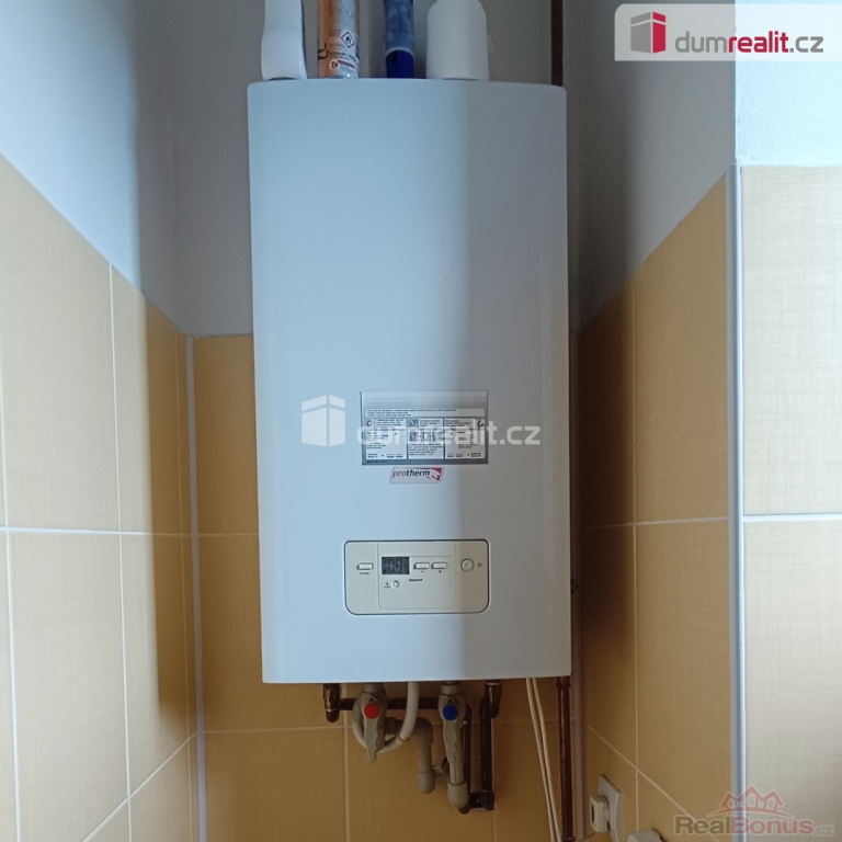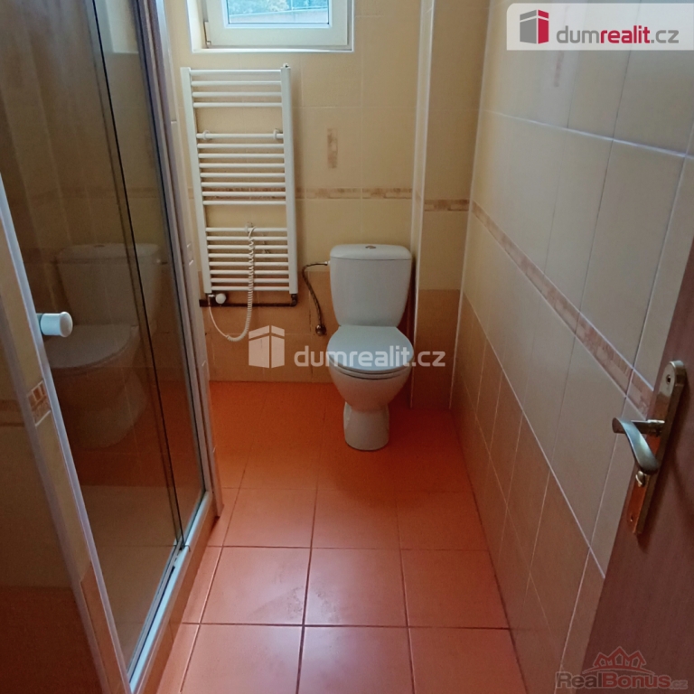 Koupelna je vybavena sprchovým koutem, toaletou a nezbytným příslušenstvím. Zde je také umístěn samostatný plynový kotel na ohřev vody. Teplo je etážově rozvedeno do radiátorů po celém bytě. Okna jsou plastová. Část domovní chodby slouží jako uzavřená předsíň v podílovém užívání pro tento i sousední byt. Je uzamykatelná a dobře všem poslouží k odkládání venkovní obuvi a ošacení. O čistotu a úklid společných domovních prostor se nájemníci starají sami. Bytová jednotka se nabízí k okamžitému podnájmu max. dvou osob, nekuřáků bez domácích mazlíčků.