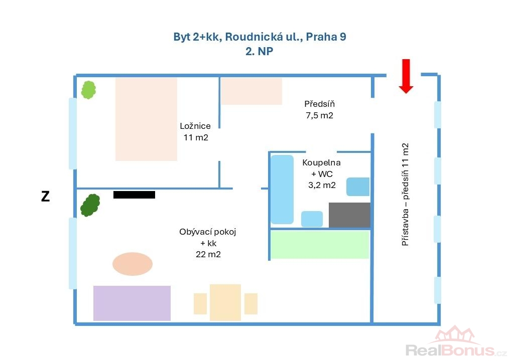 | Dispozice bytu | 2+kk |