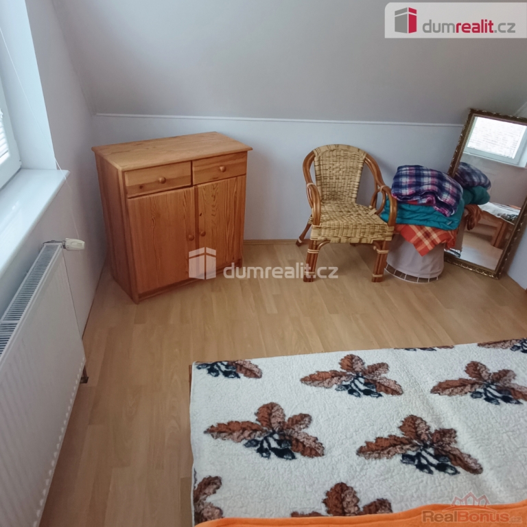 V patře jsou 3 místnosti - ložnice, dětský pokoj a dosti prostorná šatna. Dispozice domu je 4+KK. Splňuje tedy podmínky bydlení pro rodinu s dětmi, která upřednostňuje klidné prostředí a pohodu malebné obce v blízko přírodních krás, jakož je např. na dojezd vzdálen Dolský mlýn, ke kterému se dostanete i po turistické trase přímo z obce směrem na Kamenickou Stráň, dále turistickými trasami nebo autem do Hřenska a všemi známou Pravčickou bránu, či lodičky údolím řeky Kamenice. Atraktivních výletů a sportovního vyžití se v obci Růžová nabízí nespočet. Samozřejmě, že nedílnou součástí obce Růžová je mnohým známá Růžová vyhlídka, skýtající překrásný rozhled do všech směrů této malebné krajiny uprostřed lesů Českého Švýcarska.