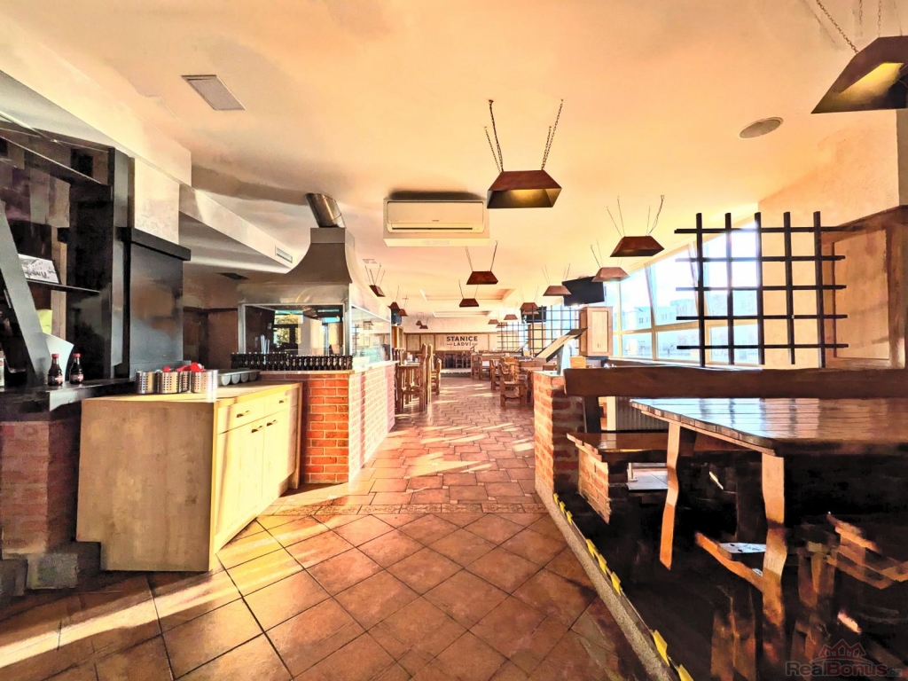 Restaurace se nachází ve 2.NP komerční budovy a zahrnuje celkovou plochu 460m2. Vstup do restaurace je vedený po vlastním schodišti z přilehlé pěší komunikace. K restauraci dále náleží venkovní terasa o výměře 150m2. Plocha terasy není započítána v celkové ploše nebytového prostoru.
