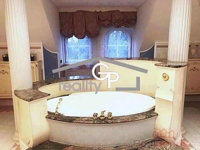 Přízemí dominuje velkorysá vstupní hala s ručně vyřezávaným schodištěm, která propojuje obývací pokoj s krbem, jídelnu a luxusní kuchyni se spotřebiči Miele a Gaggenau. Dále se zde nachází ložnice s vlastní koupelnou a pracovna. Součástí rezidence je wellness zóna s vnitřním bazénem, vířivkou a přímým vstupem na terasu.