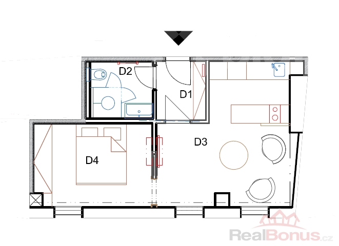 | Dispozice bytu | 2+kk |