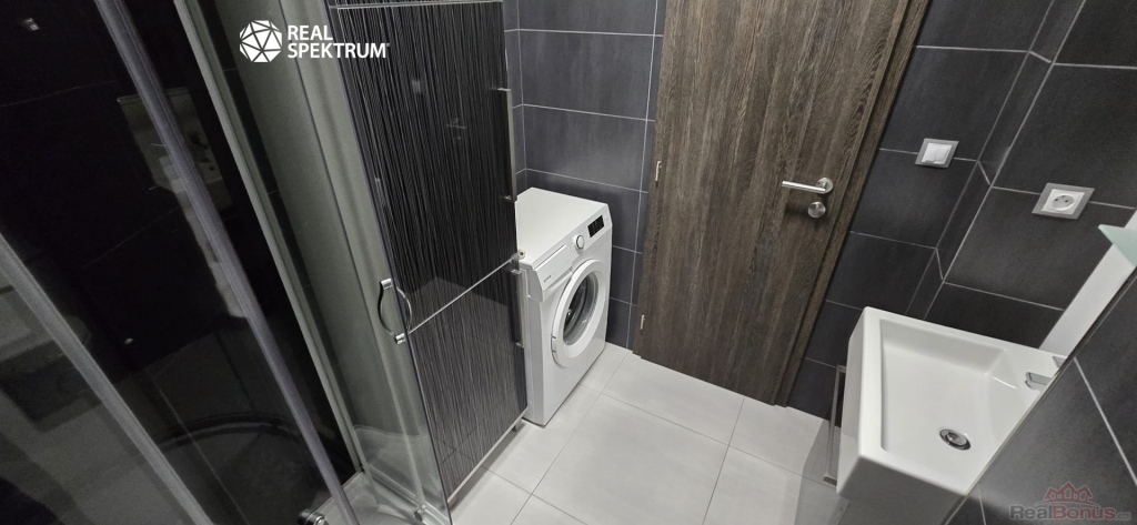 Byt se nabízí vybavený, kde se nachází kuchyňská linka se spotřebiči (varná deska, trouba, digestoř, mikrovlnka, lednička s mrazničkou), manželská postel, skříň, jídelní stůl, židle, pracovní stůl, křeslo a ve vstupní chodbě najdete velkou vestavěnou skříň. Koupelna je vybavena pračkou, sprchovým koutem, umyvadlem a toaletou.