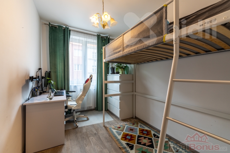 Klidová zóna: Ložnice nabízí dostatek místa pro prostornou šatní skříň i pracovní kout, což oceníte při práci z domova. Druhý pokoj je připraven jako dětské království nebo pokoj pro hosty.