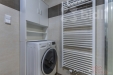 Chytře řešený vstup: Zádveří s koupelnou a toaletou je odděleno od obytné části, což zajišťuje klid a soukromí v celém bytě.