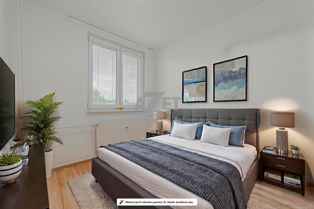 Umístění bytu je v 5. patře bytového domu. Byt vybízí k úpravám dle vlastních představ - ne však nutných neboť je v bytě elektřina již v mědi a byl nedávno kompletně vymalován. Součástí obývacího pokoje prostorná zasklená lodžie, v chodbě při vstupu do bytu je komora jenž může sloužit také jako šatník. V chodbě je také dostatek prostoru na umístění velké vestavné skříně. Ložnice byť menších rozměrů přesto stále dostatečně velká pro manželskou postel a skříň či komodu. Dětský pokoj útulný a přesto dostačující nejen pro jedno dítě. Do kuchyně lze vstoupit z chodby či obývacího pokoje, nabízí se zde možnost jeden ze vstupů zazdít a zvětšit si tak prostor pro kuchyňskou linku či jídelní stůl. Součástí kuchyně je včetně kombinovaného sporáku také i myčka a digestoř. Konstrukce koupelny je sice původní přesto velmi zachovalá a chytře navržená tak aby zbylo dostatek prostoru pro sprchový kout a pračku se sušičkou. WC je samostatné. K bytu náleží sklepní kóje, kromě této kóje lze využívat kočárkárnu a kolárnu. Byt je družstevní, nyní bez možnosti převodu do osobního vlastnictví.