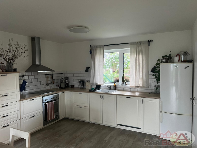 Dům je vybavený : lednice, kuchyňská Linka, mrazák, sušička, postel, skříň, komoda, sedací souprava, dvě vitríny na knihy, jídelní stůl a židle, garderoba, police a regály ve spíži i v předsíni, sestava skříněk.