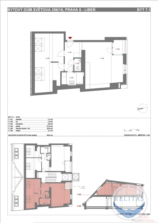 K pronájmu nabízíme zcela nový, dosud neužívaný byt 2+kk o ploše 69,6 m s balkonem 3,1 m, situovaný v kompletně zrekonstruovaném bytovém domě ve vlastnictví majitele na adrese Světova 16.