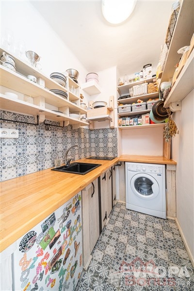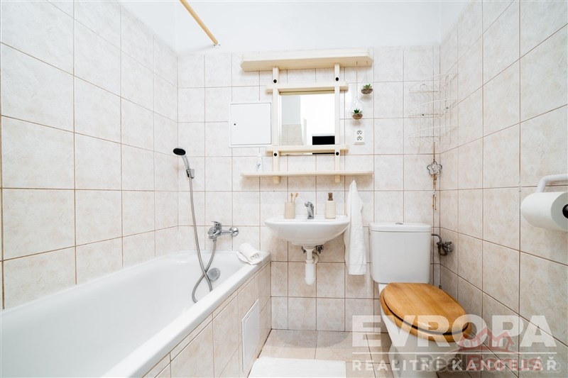 Po vstupu do bytu se ocitnete v chodbě s možností ukládání oblečení, tak aby vše bylo po ruce. Z této chodby se dostanete do koupelny s vanou a WC a dále do pokoje s lodžií a s kuchyňským koutem. Na tento pokoj navazuje malá samostatná ložnice. K bytu dále patří samostatná komora na patře bytu, kterou využijete pro uskladnění sportovního vybavení.