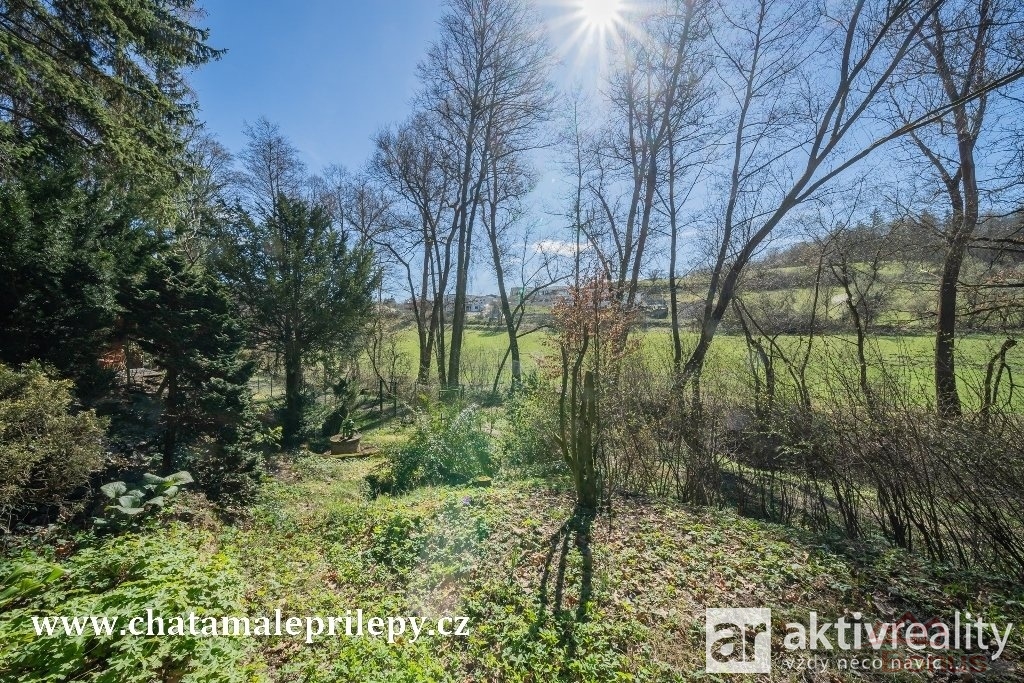 Okolo chaty na pozemku velkém 1 007 m2 se nachází malebná zahrada s okrasnými keři a stromy, ideální pro odpočinek a grilování. Nad chatou se rozprostírá část pozemku, která je zalesněná a svažitá.