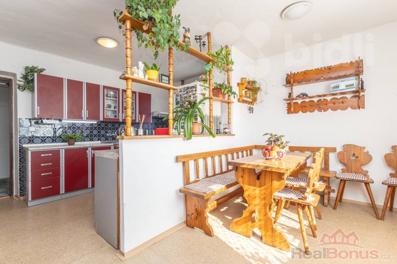 Součástí domu je také garáž pro jedno auto a prostorné sklepy, které nabízejí dostatek úložného i technického zázemí. Na zahradě najdete bazén a pergolu, ideální pro letní odpočinek a posezení s rodinou či přáteli. V zadní části zahrady se nachází dílna určená k rekonstrukci, která může následně sloužit například jako pracovní zázemí, ateliér nebo sklad.