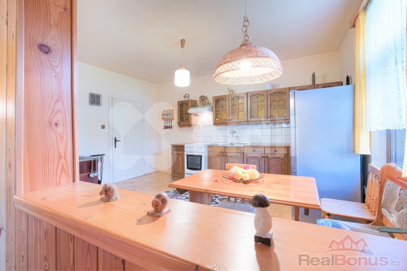 Upozornění: Tato nabídka je rezervována konkrétním zájemcem a v rezervační lhůtě není k dispozici! Dovolujeme si vám nabídnout stavbu 3+1 o velikosti 145m2 pro rodinnou rekreaci vhodnou k trvalému bydlení. Stavba je z části podsklepená, jinak izolovaná, a procházela, během let rekonstrukcí. Nová elektřina, veškeré rozvody topení v mědi. Vytápění je řešeno kachlovými kamny s rozvody do ústředního topení, v některých pokojích navíc přímotopy, nebo kamínka na tuhá paliva. V domě jsou nová dřevěná okna. Velká koupelna s wc a vanou a prostorem na pračku a sušičku, bojler 80l, a elektrický přímotop. V prostorné kuchyni jsou funkční kachlová kamna, sporák na elektřinu, plyn v domě není a na kuchyň navazuje prostorný obývací pokoj. V pokojích jsou vyvedeny i přípojky na přímotopy kdyby někdo chtěl využít. V domě jsou dřevěné podlahy a dlažba. V půdním prostoru je možnost vybudovat další krásné pokoje. Dům je napojen na obecní vodovod, je zde i kopaná studna. Střešní krytina je Betternit. Dům má energetickou třídu D. Příjezdová cesta k domu je obecní. K domu patří pozemek 227m2. Ostatní pozemky o velikosti 1895m2 jsou v pronájmu od obce za 1kč za metr ročně a pozemkového fondu za poplatek. Na zahradě je ještě zahradní domek a kůlna. Komíny nejsou vyvložkovaný, ale revize doložíme. Doporučuji prohlídku, na které můžeme probrat i případné financování. Energetický štítek - PENB je D.