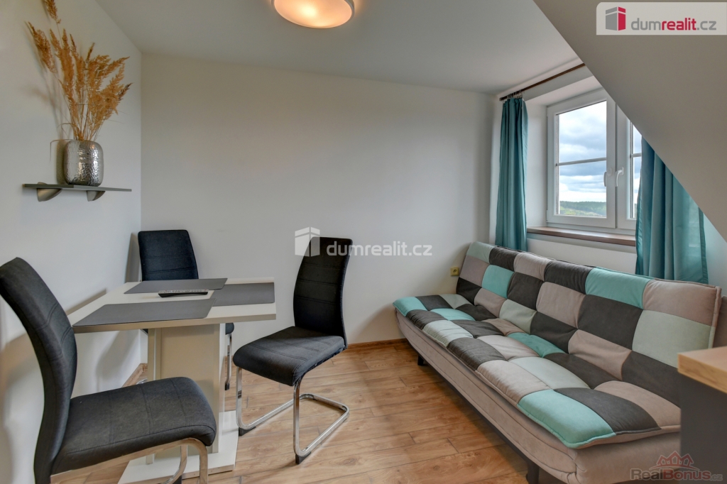 včetně právního servisu a odměny zprostředkovatele, Dumrealit.cz Vám zprostředkuje exkluzivně prodej zajímavého horského apartmánu (mezonetu) 1+1 o velikosti 33 m v obci Abertamy, okr. Karlovy Vary. Jedná se o byt ve 3. a 4.patře cihlového domu. Byt je zařízen vkusným nábytkem a vybavením. K bytu náleží prostorný zděný sklep o velikosti 8 m a jedno vyhrazené parkovací stání. Budova z třicátých let 20. století byla kompletně zrekonstruována v letech 2021 2022 a je zateplena a opatřena plastovými okny. V přízemí se nachází nebytové prostory v současné době půjčovna kol a prádelna. Pro obytnou část je samostatný vchod. Ve třech nadzemních podlaží se nachází celkem 5 jednotek a společná chodba se schodištěm. V domě je veřejný vodovod, kanalizace a každá jednotka má vlastní elektro rozvaděč s elektroměrem. Z apartmánu je vzhledem k jeho poloze krásný výhled zejména na vrchol Plešivec. Nachází se cca. 100 metrů od náměstí a tedy i občanské vybavenosti. Vzhledem k tomu, že před zadáním do inzerce nebyl předložen PENB, je tento byt v souladu s platným zákonem zařazen do energetické třídy G. Ev. číslo: 650310. Energetický štítek: G