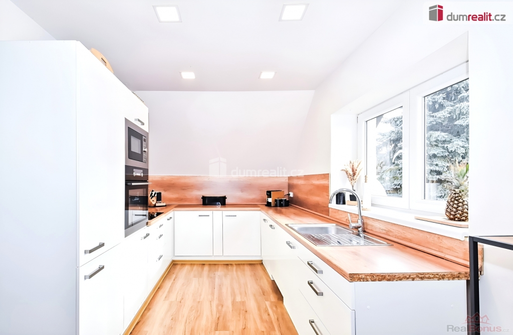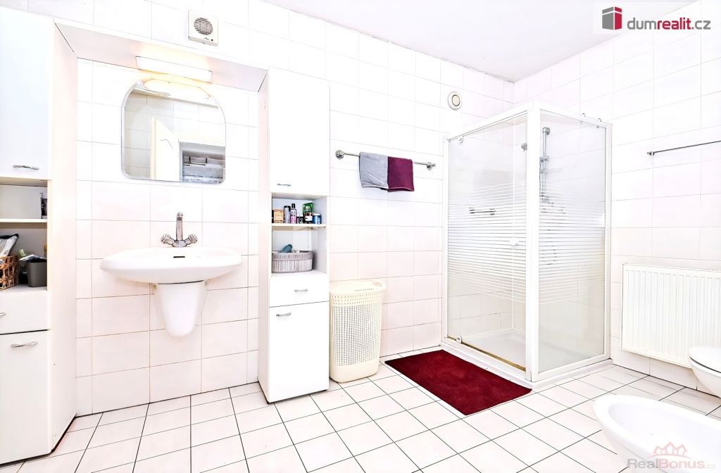 Bezproblémové parkování pro 4 auta, voda - veřejný vodovod, odpad - septik, střecha je vhodná pro FVE, pod domem je sklep (12m).