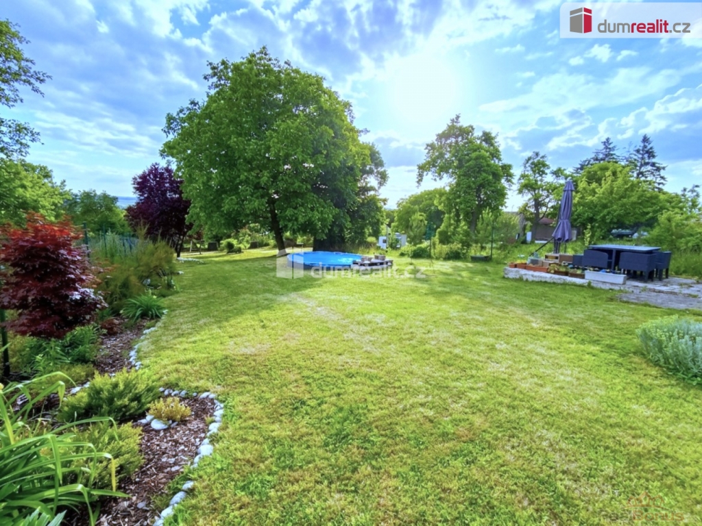 Pěkná a dostatečně veliká (1.157m) zahrada s kruhovým bazénem je ideální pro aktivní vyžití ale i relax a dobití energie ve stínu vzrostlých stromů, z části ovocných.