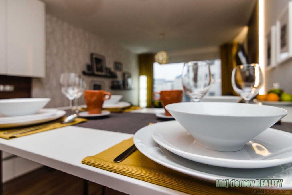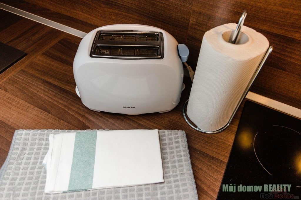 Byt je kompletně vybavený a připravený k okamžitému užívání. K dispozici je kuchyňská linka se spotřebiči, myčka nádobí, pračka, lednice, mikrovlnná trouba, trouba, vysavač a další běžné vybavení domácnosti. Stačí se pouze nastěhovat.