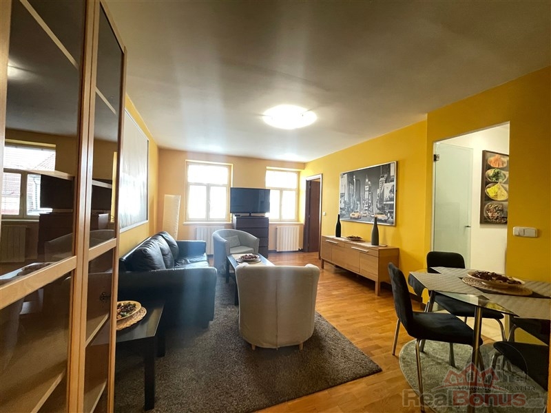Nabízíme zařízený byt 3+KK ve 4. patře, o rozloze 73,92 m2. Byt se sestává z chodby, obývacího pokoje, kuchyně, 2 ložnic, samostatného WC, koupelny. Byt je zařízený. Nájemné: 26500,Kč + 1.500,Kč domovní služby za osobu (vodné, stočné, úklid domu, výtah, osvětlení v domě atd.) + revize kotle 220 Kč/měsíc + elektřina a plyn na vlastní náklady. Zvířata dovolena.