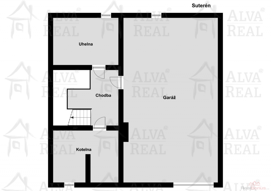 1.NP: garáž 49 m2; chodba 10 m2; kotelna 10 m2; uhelna 10 m2.
