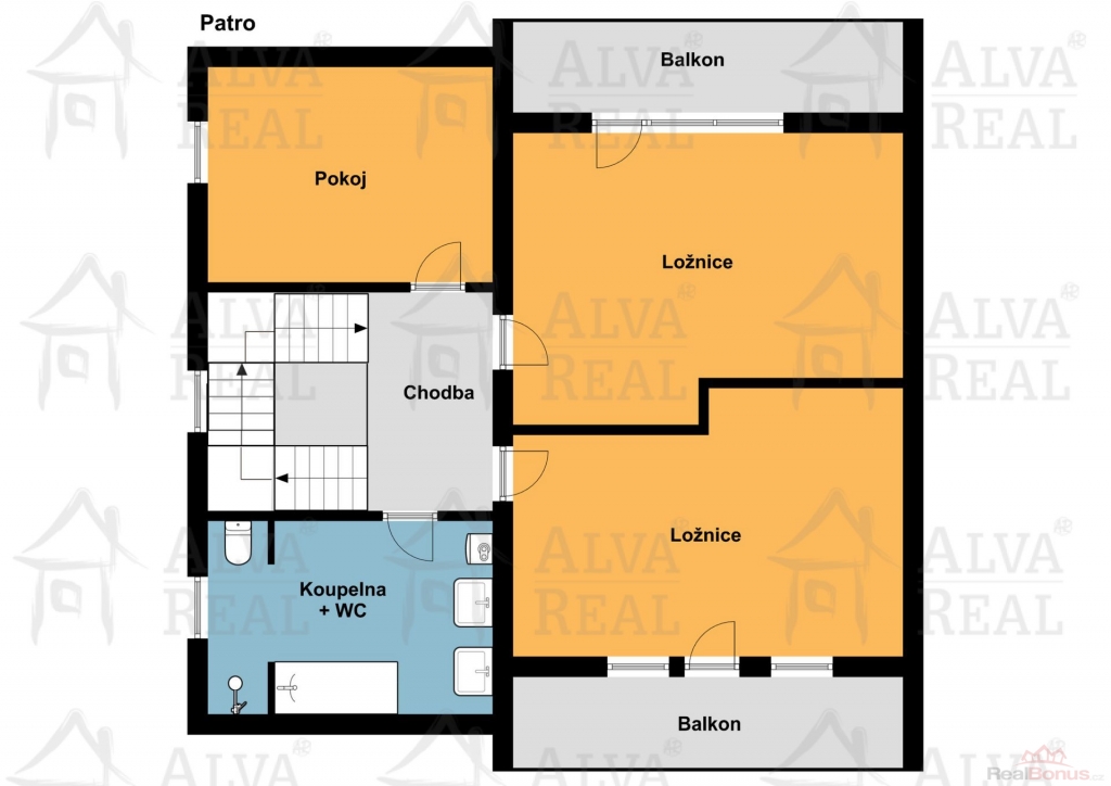 Velkou předností tohoto domu je jeho výjimečná dispozice, v 2. patře se nacházejí 2 ložnice s vlastními prostornými balkony, každé patro s ložnicemi/pokoji má koupelnu s toaletou. Místnosti jsou prostorné a díky velkým oknům světlé. V 1. patře se nachází samostatné WC, přímo v kuchyni se nachází menší spíž a z obývacího pokoje je vstup na 3. balkon.
