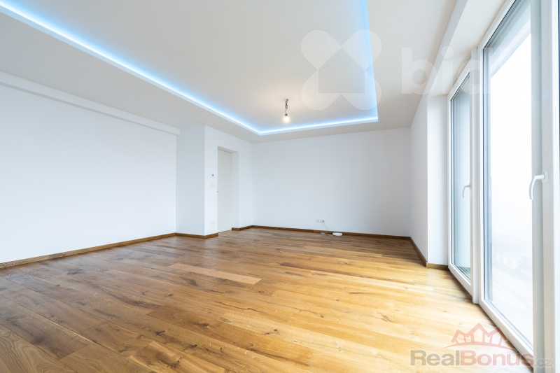 Srdcem domova je impozantní obývací pokoj s kuchyňským koutem o výměře 68 m2. Prostor je navržen tak, aby bez problémů pojal velkou rodinnou sedačku a prostornou kuchyni s ostrůvkem. Jídelní část je připravena pro stůl pro 10 osob, což z domu činí ideální místo pro setkávání. Z obývacího pokoje vstoupíte na hlavní terasu (60 m2) s proskleným zábradlím, která nabízí krásný výhled na Sedlec. Na tomto podlaží se dále nachází pracovna, samostatná toaleta a hlavní koupelna s druhou toaletou. Z této koupelny i z dalšího pokoje (32 m2) je umožněn vstup na zadní, západně orientovanou terasu s horní zahradou.