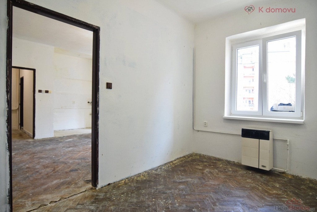 Byt je v původním stavu, ale jeho uspořádání a prostor má velký potenciál, který lze využít při následné rekonstrukci. Byt je kompletně vyklizený a je odstraněna i původní kuchyňská linka, takže je k rekonstrukci podle vašich představ zcela připravený. K bytu přináleží čistá sklepní kóje v suterénu domu.