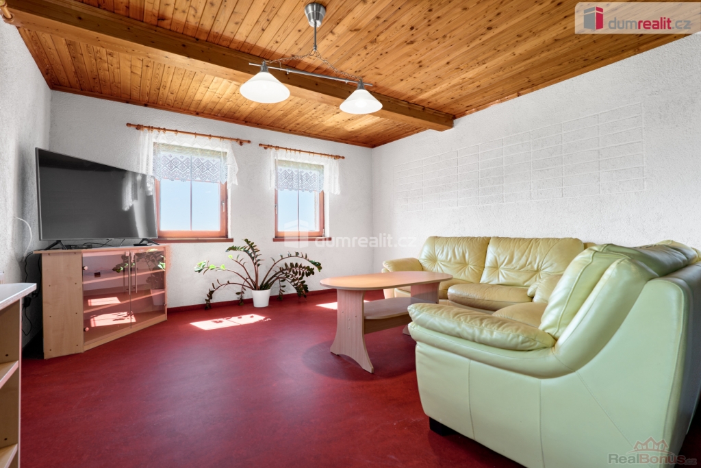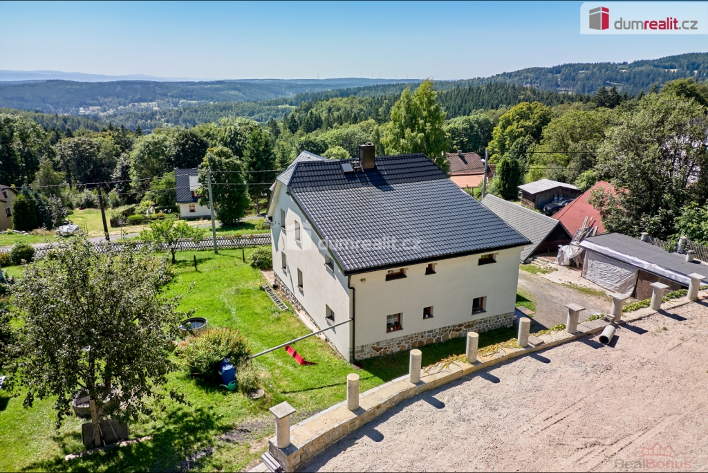 Cena vč. právních služeb a provize RK, Dumrealit.cz Vám zprostředkuje prodej prostorného rodinného domu v Tisové u Nejdku. Dům se nachází v klidné části obce na pozemku o celkové výměře 5.967 m. Tento zděný dům s kamennými základy je ze 3/4 podsklepený a má podlahovou plochu 230 m (+sklep, + půda) a prošel postupnou celkovou rekonstrukcí: fasáda vč. zateplení 8 cm, střecha, eurookna vč. parapetů, omítky vč. výmalby, podlahy, rozvody elektroinstalace, vody, a topení vč. těles radiátorů. Dispozice domu je 2x 3+1 vč. koupelen a samostatných WC. V 1.NP se nachází: zádveří, chodba vč. schodiště, obývací pokoj, kuchyně s kuchyňskou linkou na míru a vestavěnými spotřebiči, 2 samostatné pokoje, koupelna s vanou a samostatné WC. V 2.NP se nachází: chodba vč. schodiště, obývací pokoj, kuchyně s kuchyňskou linkou na míru a vestavěnými spotřebiči, 2 samostatné pokoje, koupelna vč. sprchového koutu a samostatné WC. Dům má také prostornou půdu s možností vybudování dalších obytných místností. Vytápění domu a ohřev vody je zajištěn kotlem na tuhá paliva se zásobníkem (bojler 200l - 1 rok starý). Dům má zadní bezbariérový vchod, vlastní vrt s domácí vodárnou a septik. Na pozemku se nachází kryté garážové stání pro 2 vozidla nebo podzemní dílna 60 m. Pozemek je ze všech stran oplocen a nabízí neomezené možnosti využití. Dům je připraven k nastěhování bez dalších investic. Díky ideální poloze domu máte veškerou občanskou vybavenost snadno a rychle dostupnou ve městě Nejdek cca 5 min automobilem (školy, školky, obchody, lékař, autobusové nebo vlakové nádraží). Upravené cyklostezky, turistické trasy nebo nedaleké lyžařské areály vám umožní bohaté celoroční sportovní vyžití. Tuto nemovitost lze hradit hypotečním úvěrem, který Vám rádi pomůžeme vyřídit v našem hypotečním centru. Vzhledem k tomu, že před zadáním do inzerce nebyl vyhotoven PENB, je tento dům v souladu s platným zákonem zařazen do energetické třídy G. Ev. číslo: 652129. Energetický štítek: G