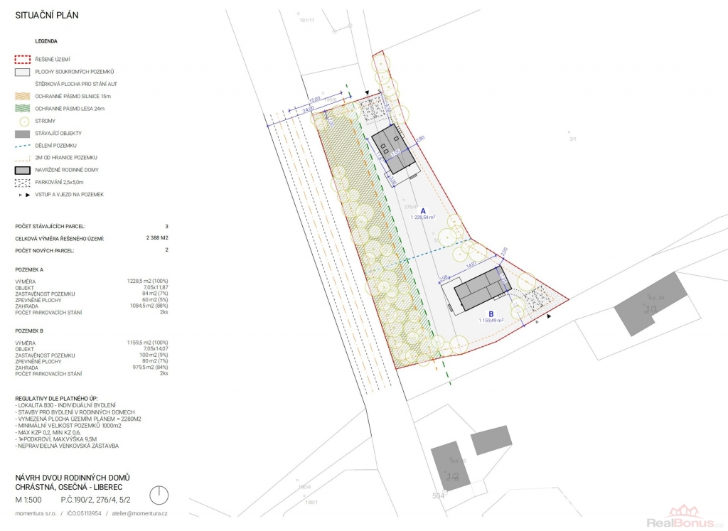 - intenzita využití pozemku - koeficient zeleně min. KZ = 0,60