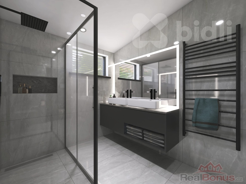 Projekt počítá s komfortním dispozičním řešením - zastavěná plocha 83,2 m2, podlahová plocha 140,6 m2, prakticky navržené podlaží s obytnou i technickou částí a podkroví, které poskytne dostatek prostoru celé rodině. Jižní orientace pozemků zaručí dostatek světla a příjemnou atmosféru v domě i na zahradě.