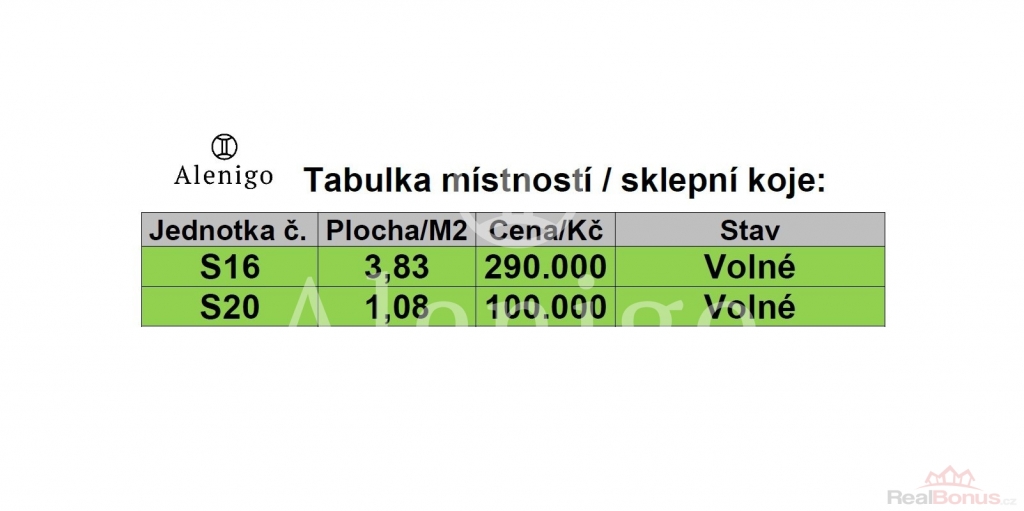 Ceník dalších jednotlivých nebytových prostor na foto v inzerátu.