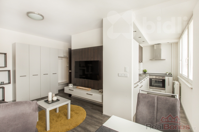 Byt prošel kompletní rekonstrukcí a je připraven k okamžitému užívání bez nutnosti dalších investic. Byt se nabízí včetně veškerého vybavení a zařízení. Dispozičně je řešen velmi prakticky. Vstupní část tvoří prostorná chodba, ze které je přístup do všech místností. Obývací pokoj je propojen s kuchyňskou částí, kde se nachází moderní kuchyňská linka s vestavěnými spotřebiči. Ložnice je vybavena vestavěnou skříní, která poskytuje dostatek úložného prostoru. Koupelna je osazena vanou, toaleta je samostatná.