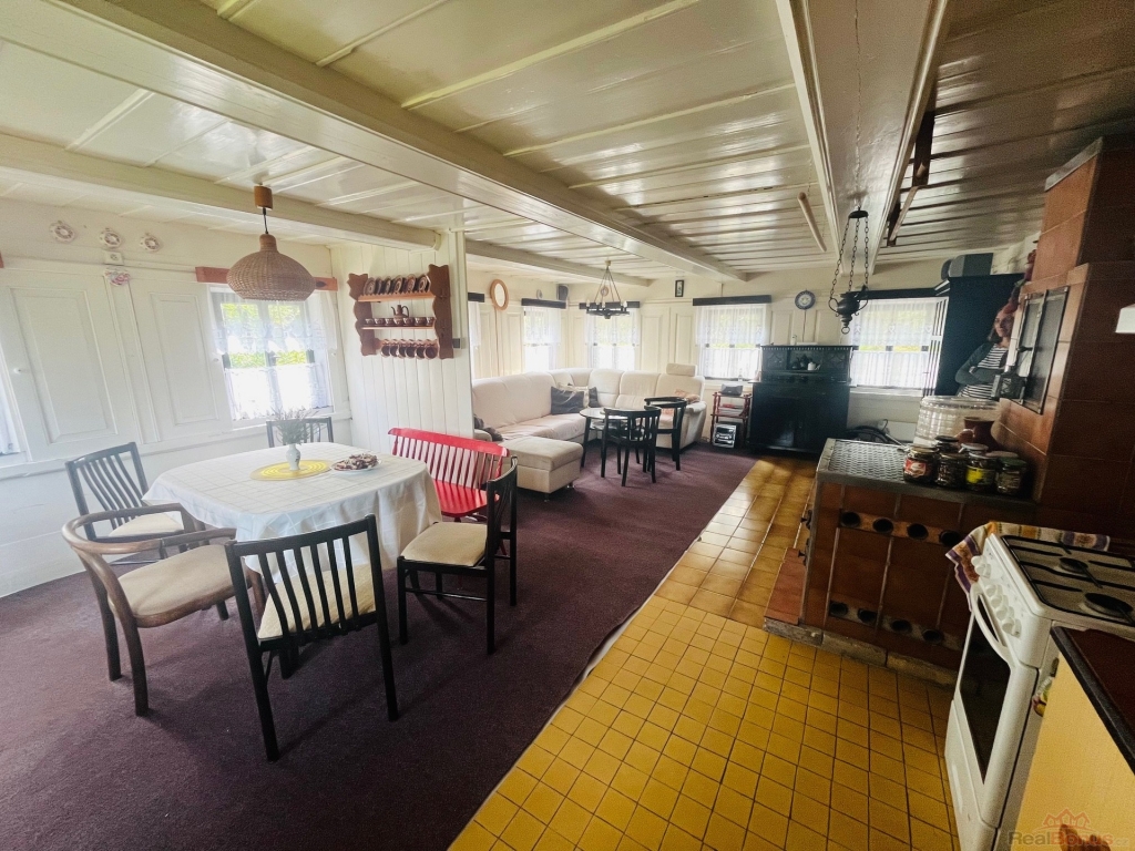 Nabízím k prodeji krásnou chalupu s velkým pozemkem v malebné obci Rožany (Nová Ves - Šluknov) nedaleko hranic s Německem. Chalupa má 3 pokoje a jeden velký obývací pokoj propojený s kuchyní a jídelnou. Kuchyni dominují krásná kachlová kamna, která vytápí právě tuto největší místnost a v dalším pokoji v přízemí jsou další kamna s výměníkem, které vytápějí koupelnu a pokoj v patře. Půda je natolik veliká, že by bylo možné tady vybudovat ještě jeden veliký pokoj.