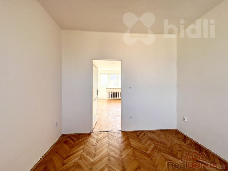 Dispozici tvoří dva samostatné neprůchozí pokoje, samostatná kuchyň a koupelna. V obývacím pokoji se nachází praktický policový systém, který opticky odděluje část místnosti a vytváří tak samostatný prostor vhodný například pro pracovní kout, čtecí zónu nebo menší domácí kancelář.