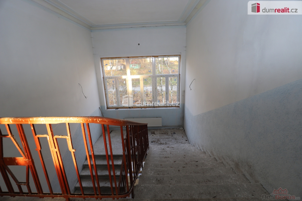 , Dumrealit.cz Vám zprostředkuje koupi vyjímečné příležitosti koupi budovy s přilehlými pozemky v blízkosti benzínové pumpy MOL v Novém Žďáru u Aše za obcí Mokřiny. Budovu obklopuje pozemek o rozloze 4495 m, s tím, že z části jej tvoří pozemek vhodný pro parkoviště až pro 50 aut. parkovat se dá na pozemku kolem budovy plus na horním odděleném pozemku. Objekt je ideální pro provozování ubytovny či hotelu. Nyní je v objektu 27 pokojů (apartmánů - počítáme počet koupelen), které mají všechny svou koupelnu a toaletu. Některé z 27 apartmánů/pokojů jsou prostorné (až 40 m, některé menší, některé jsou rozdělené na více pokojů). Objekt má 4 vchody, z každé strany budovy jeden. V přízemí jsou prostory zamýšleny na 2 restaurace. Na pravé části může být jeden podnik, na levé potom další, případně by nový majitel mohl prostory pronajmout: jednu část, kde je příprava na kuchyni na restauraci, druhou část na obchod či služby (masáže apod..).Celý objekt je po rekonstrukci elektřiny, rozvodů topení, jsou zde nové radiátory, nové jsou vybavovací předměty v koupelnách. Roku 2024 byla provedena masivní investice do nové střechy a nových platových oken v celé budově (na fotografiích jsou někde záběry ještě starých oken - bude přefoceno). Vytápění je na olej, v suterénu je technická místnost s novým kotlem a bojlery. Suterén je velmi prostorný a členitý, dal by se využít na společné prostory, prádelnu apod.. či by zde byl vhodný sklad či společenské prostory pro ubytované. V objektu je také obrovský půdní prostor. Blízkost benzínové pumpy je vhodná pro drobné nákupy, je zde také obchod se smíšeným zbožím, zastávky MHD. Do 5 minut jízdy autem je město Aš, kde je veškerá občanská vybavenost, do 15 minut jízdy je Cheb. Blízkost Německa činí lokalitu zajímavou pro pendlery. Cena zahrnuje veškerý právní servis a provizi RK. Ev. číslo: 652857. Energetický štítek: G (150 kWh/m2/rok).