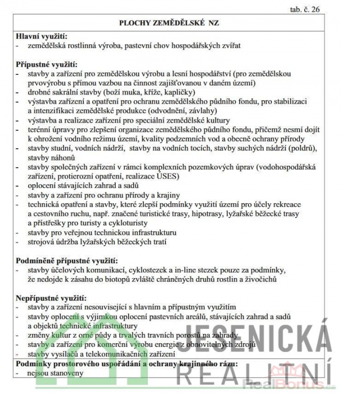 Hlavní využití: zemědělská rostlinná výroba, pastevní chov hospodářských zvířat