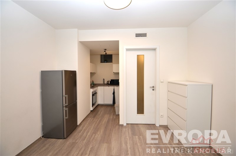 Pronájem bytu v krásné novostavbě rezidence Prachnerova. Dispozice bytu 1+kk, 33m2 s příjemnou a prostornou lodžii. Byt se skládá z předsíně, s šatní skříní, dále průchodem do obývacího pokoje, který je rozdělen na část kuchyňskou a obývací, vybavená kuchyňská linka (el. trouba, skl. deska, lednice s mrazákem, myčka nádobí, mikrovlná trouba, digestoř), v obývací části je rozkládací pohovka, komoda a tv., dále vstup na lodžii, orientovanou na jižní stranu, která nabízí možnost posezení. Koupelna se sprchovým koutem, toaletou a pračkou. K bytové jednotce patří sklep. Cena nájmu je 14000,Kč + kompletní zálohy na služby a energie, včetně internetu a elektřiny 6000,Kč měsíčně.