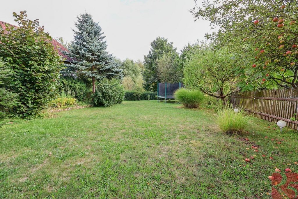 K domu je zahrada o rozloze 2 875m2 jen 30 m od domu, situovaná na hrázi rybníka s malým potůčkem, osázená ovocnými stromy, ideální k chovu zvířat, nebo pěstování zahradních a rostlinných plodin.