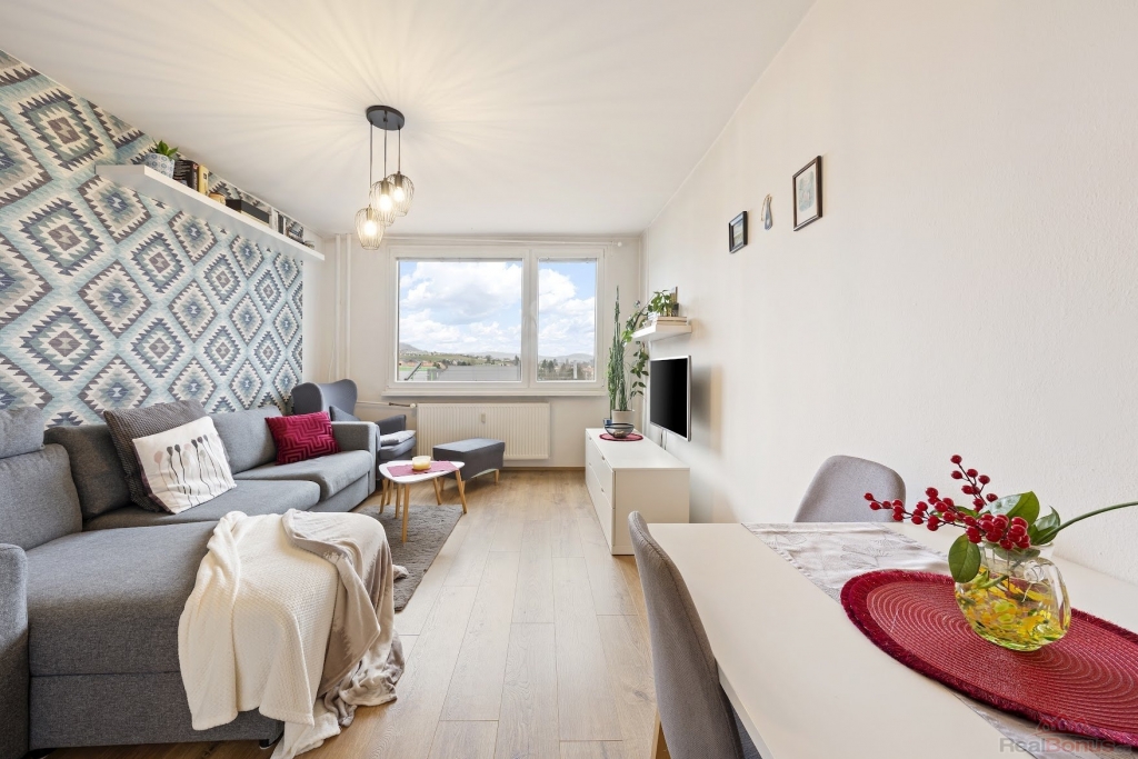 Byt je prakticky řešený tak, aby se v něm dobře žilo ? otevřený obývací prostor s kuchyní je místem, kde se potkává každodenní život. Ať už si dáte rychlou ranní kávu, nebo večer posedíte s přáteli, tenhle prostor je přesně na to.