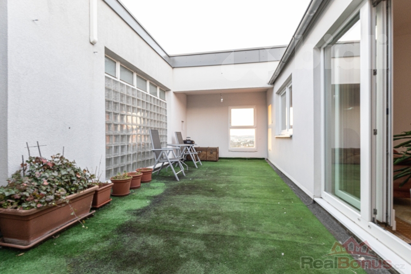 Celková užitná plocha činí 159 m2, z toho terasa zaujímá zhruba 25 m2 a sklep 4 m2. Byt prošel v roce 2001 kompletní rekonstrukcí zahrnující podlahy, dveře, kuchyňskou linku, koupelnu, topení i všechny rozvody. V roce 2009 byla část terasy odborně zastřešena a elegantně propojena s obývacím pokojem, který se tím výrazně zvětšil. Atmosféru domova doplňuje plně funkční krb a pro větší komfort i bezpečnost je k dispozici vestavěný trezor s klíčem a kódem.