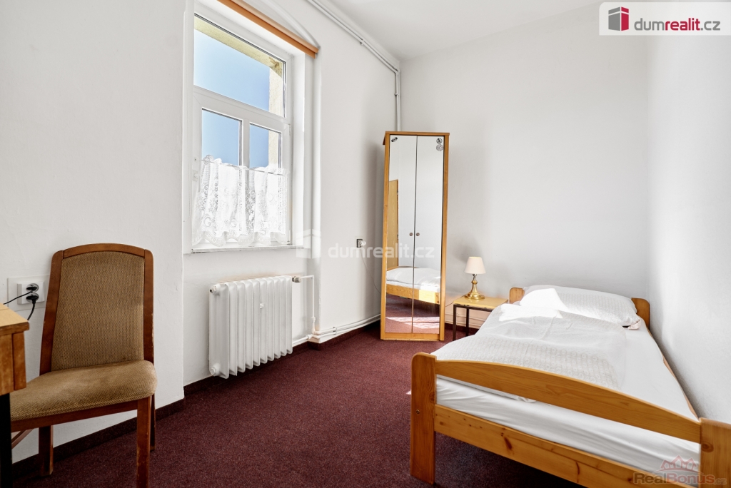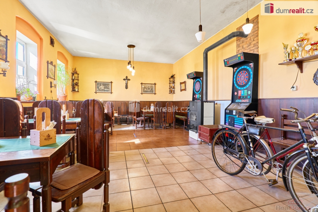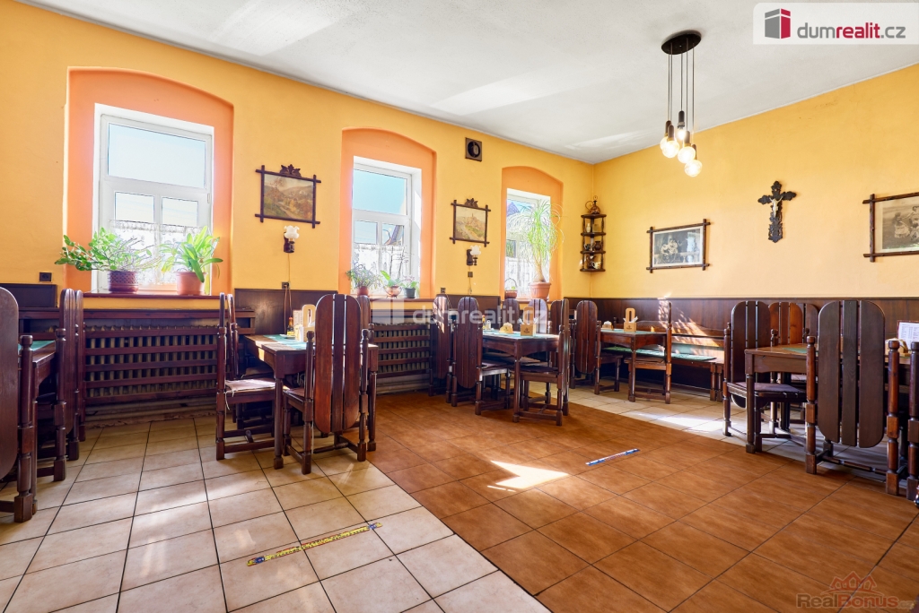 vč. právního servisu a provize RK, Dumrealit.cz Vám zprostředkuje prodej zavedené a oblíbené restaurace s penzionem "Rafanda" v obci Hroznětín na úpatí Krušných hor. V přízemí objektu je restaurace (25 míst) a salonek (35 míst), výčep, kuchyně, sklady, WC a kotelna, ve které je umístěn plynový kotel a el. bojlery. V prostoru restaurace jsou krbová kamna s výměníkem. V 1. patře jsou 4 pokoje s celkem 11 lůžky, společné sociální zařízení (WC a sprchy) a kuchyňský kout. V podkroví je byt 2+1. Sklep je využíván jako sklad nápojů. Na zahradě je venkovní posezení se 60 místy a samovýčep pro cyklisty a turisty. Budova je zateplená, na části je nová střecha. Objekt leží na hlavním silničním tahu do Krušných hor, v těsné blízkosti cyklostezky, která je součástí místní široké sítě cyklistických, turistických a běžeckých tras, vlakové a autobusové stanice. V obci je všechna potřebná občanská vybavenost. Možnost investičně využít jako ubytovnu pro zaměstnance s vlastní jídelnou. Koupě je možná i kombinací s jinou nemovitostí. Ev. číslo: 647398. Energetický štítek: G