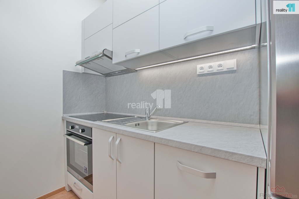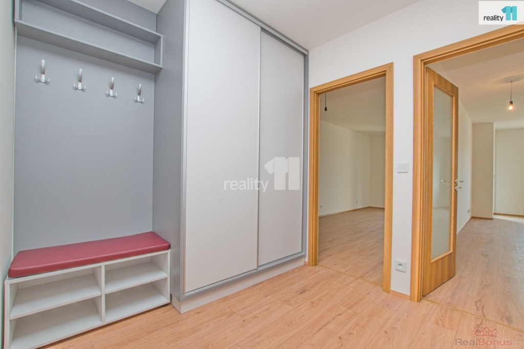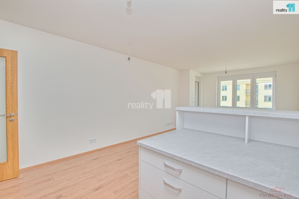 Jednotka je vybavena novou kuchyňskou linkou a barovým pultem, pro ještě větší komfort je byt vybaven venkovními žaluziemi na dálkové ovládání, které nejsou běžně součástí nových bytů a v předsíni vestavnou skříní a botníkem..
