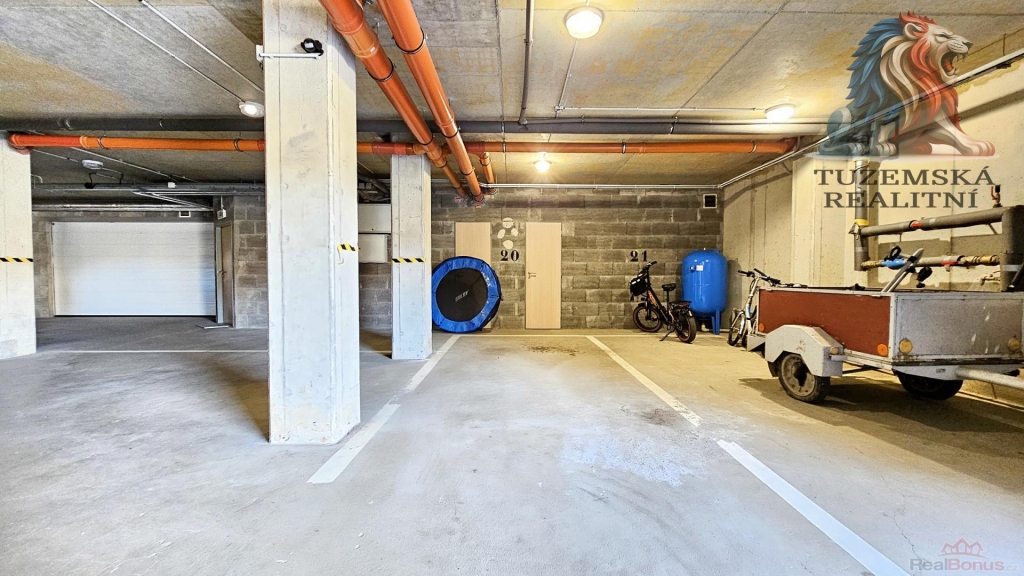 Parkování je ve vlastním garážovém stání, je i dostatek veřejných parkovacích míst u bytového domu.