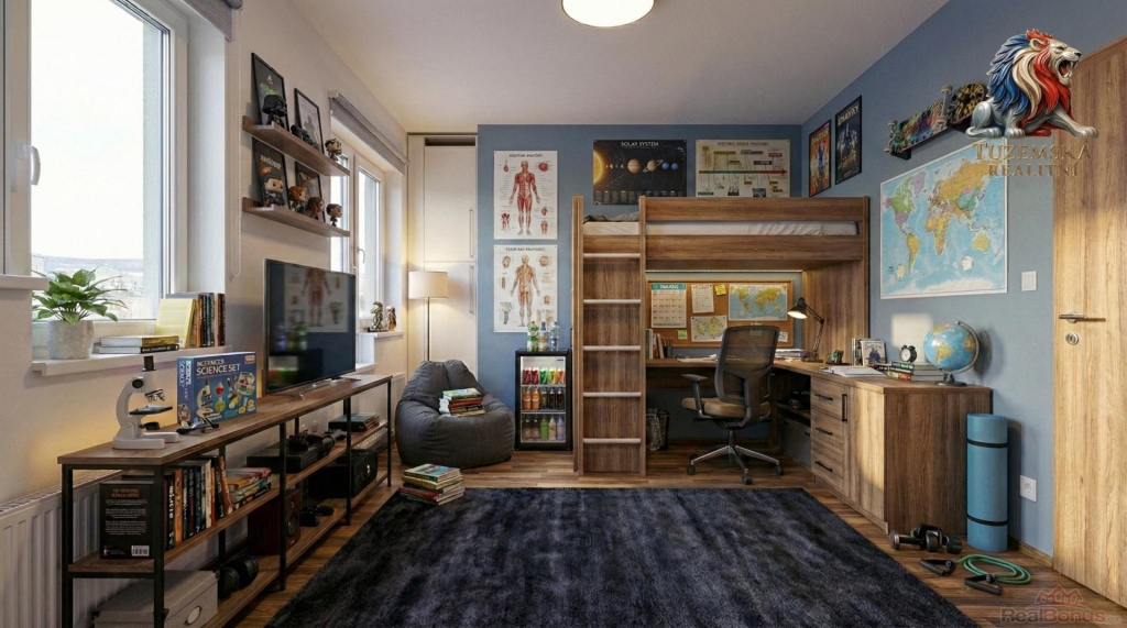 Byt samotný je prostorný a světlý s velkými okny a světlými plovoucími podlahami. Vestavěné skříně poslouží na Vaše věci. Zůstávají zde i lustry a světla.
