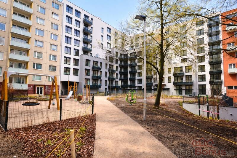 Velkou předností bytu je i jeho vybavení. K dispozici je vestavěná kuchyňská linka včetně spotřebičů - indukční deska AEG, trouba AEG, myčka AEG, digestoř a lednice Liebherr. Na kvalitním dojmu z bydlení se podílí i použité materiály a technické prvky: vinylové podlahy v pokojích, keramická dlažba v chodbě a koupelně, multifunkční komunikátor, plastová okna s trojskly a bezpečnostní dveře NEXT v bezpečnostní třídě 3.