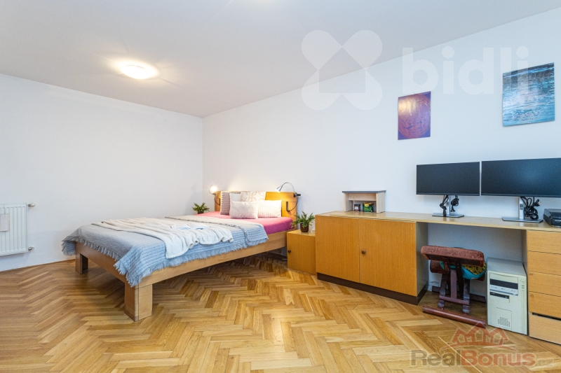 K bytu patří vlastní sklepní kóje a navíc je možné si pronajmout praktickou úložnou místnost přímo na patře.
