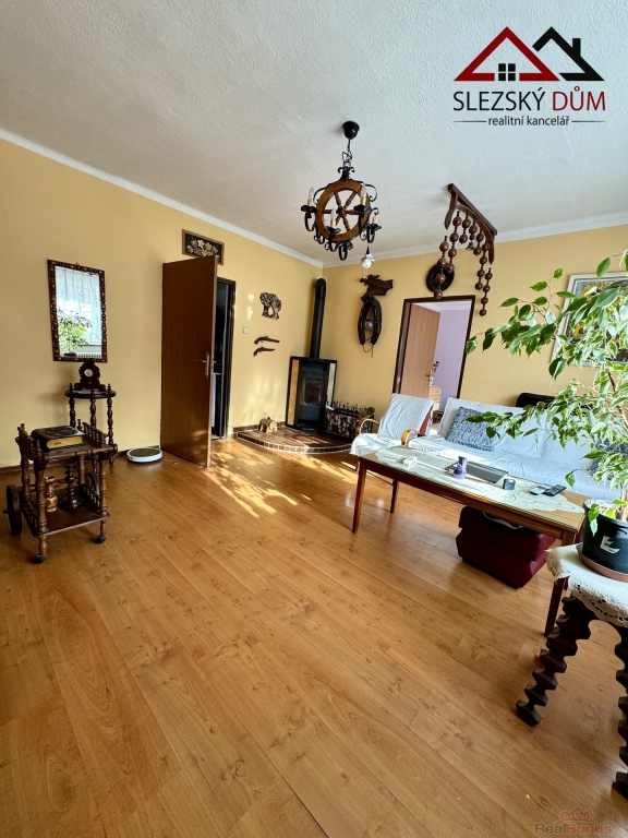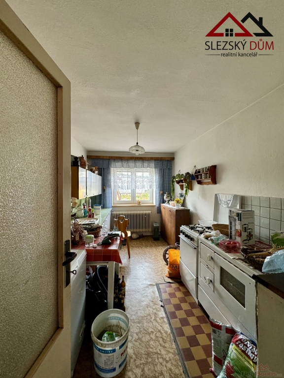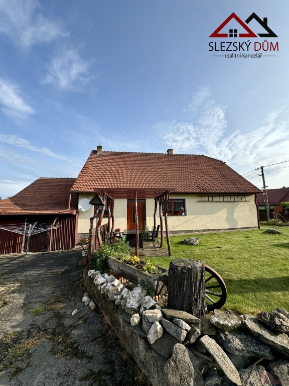 Dům je přízemní, samostatně stojící, z malé části podsklepený, s neobytným podkrovím. Dispozičně je řešen centrální chodbou, která rozděluje přízemí na dvě bytové jednotky ? větší a menší, každou s vlastní kuchyní, koupelnou a WC. Toto uspořádání je ideální pro dvougenerační bydlení nebo kombinaci vlastního bydlení a pronájmu části domu. Dům má také menší sklep, který poslouží jako praktický úložný prostor (např. na potraviny). Na obytnou část navazuje prostorná stodola (zastavěná plocha cca 73 m2), využitelná jako dílna, sklad či garážové stání pro další vůz.